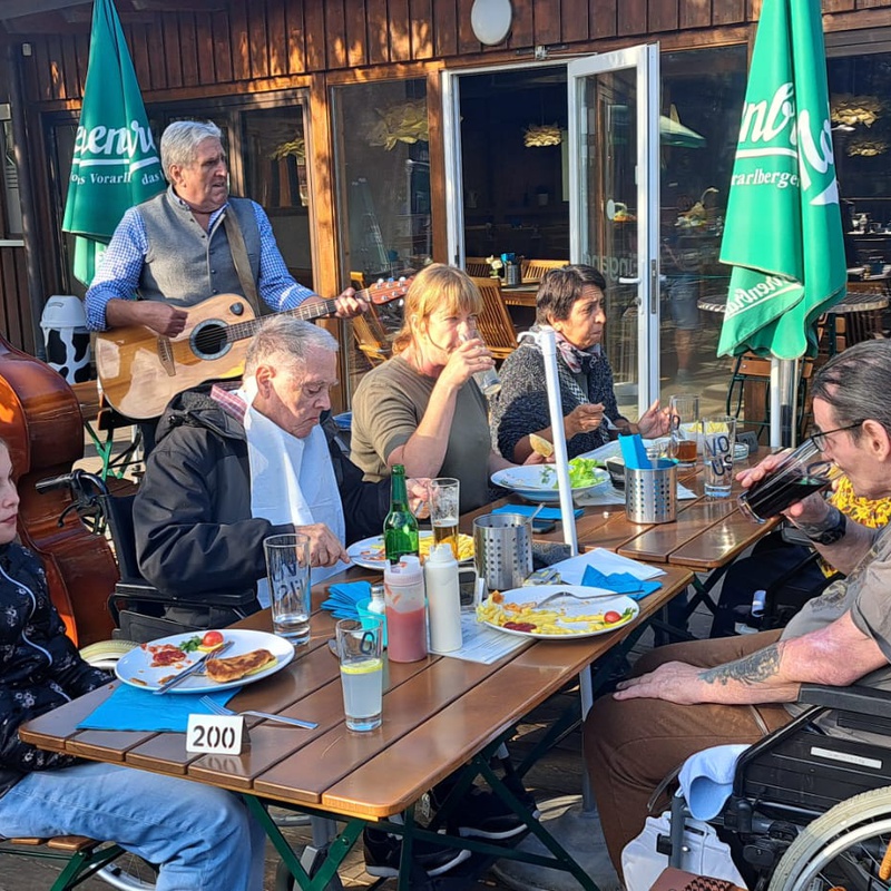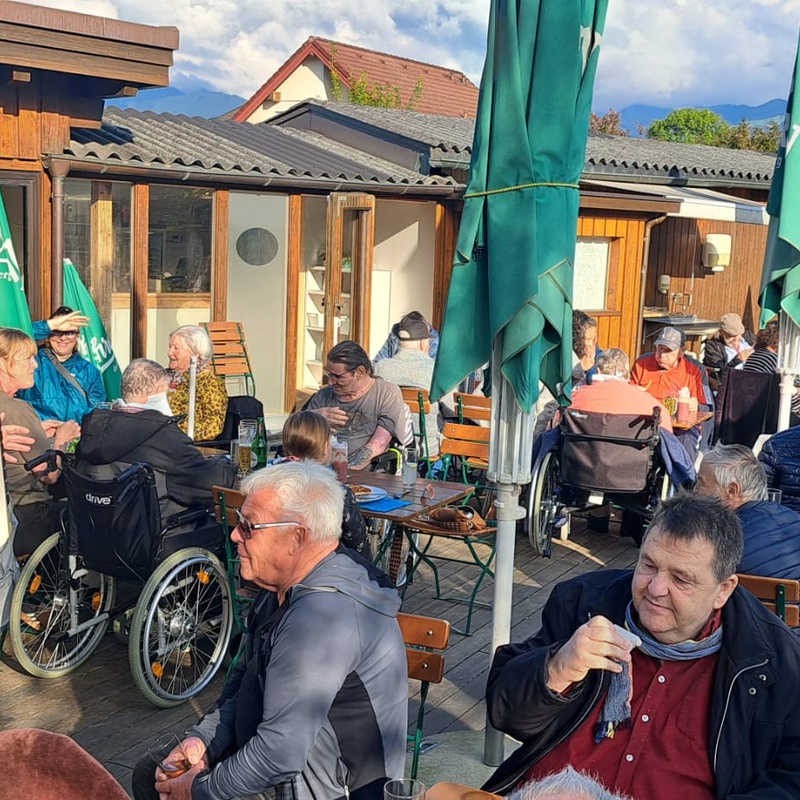 Es ist schon eine gewisse Tradition, dass die Bewohner*innen des vorderlandHUS, mitwyllarHUS und mitröthnerHUS zu einem Herbstausflug ins “Anglerparadies Güfel" in Meiningen eingeladen werden. Am Montag war es wieder soweit: Bei sonnigem Spätsommerwetter durften die Gäste einen gemütlichen und fröhlichen Nachmittag erleben. Für die musikalische Umrahmung sorgten die "Ländle 3". Ein herzlicher Dank gilt auch allen ehrenamtlichen Begleiter*innen und dem Pflegepersonal, das diesen Ausflug ermöglicht hat!