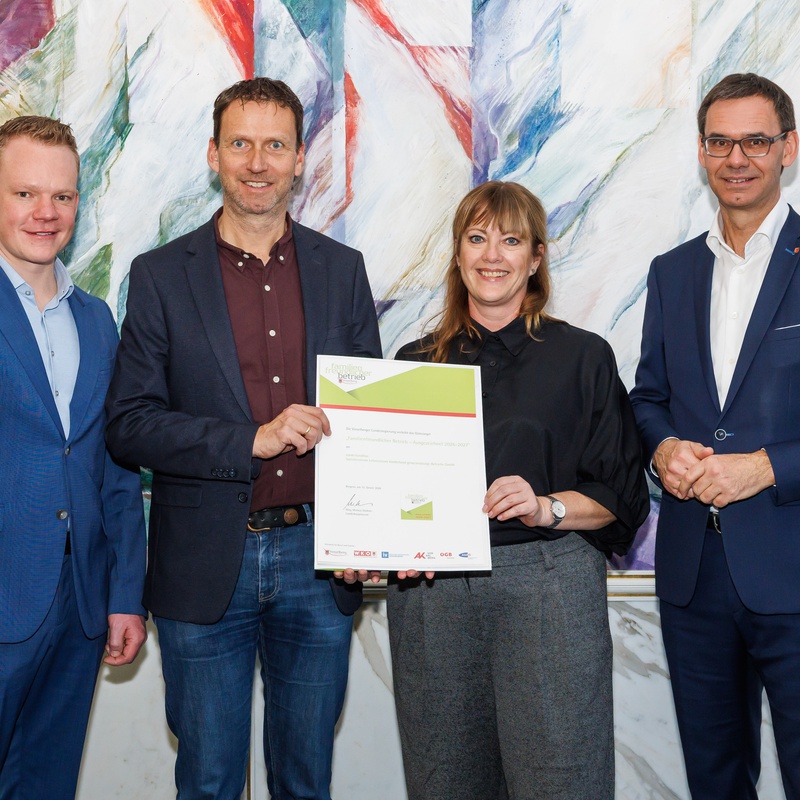 Letzte Woche durften Geschäftsführer Peter Mayerhofer und Pflegedienstleitung Tanja Riedmann das begehrte Gütesiegel „Ausgezeichneter familienfreundlicher Betrieb“ entgegennehmen.