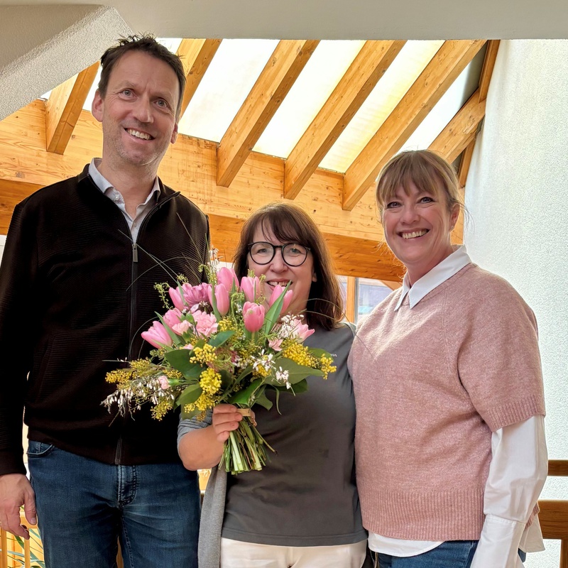 Heute durften Geschäftsführer Peter Mayerhofer und Pflegedienstleitung Tanja Riedmann Gabi Lauterer zum 10jährigen Dienstjubiläum gratulieren. Sie bedankten sich im Namen des ganzen vorderlandHUS-Teams für die Firmentreue und ihren untermüdlichen Einsatz zum Wohl unserer Bewohner*innen.