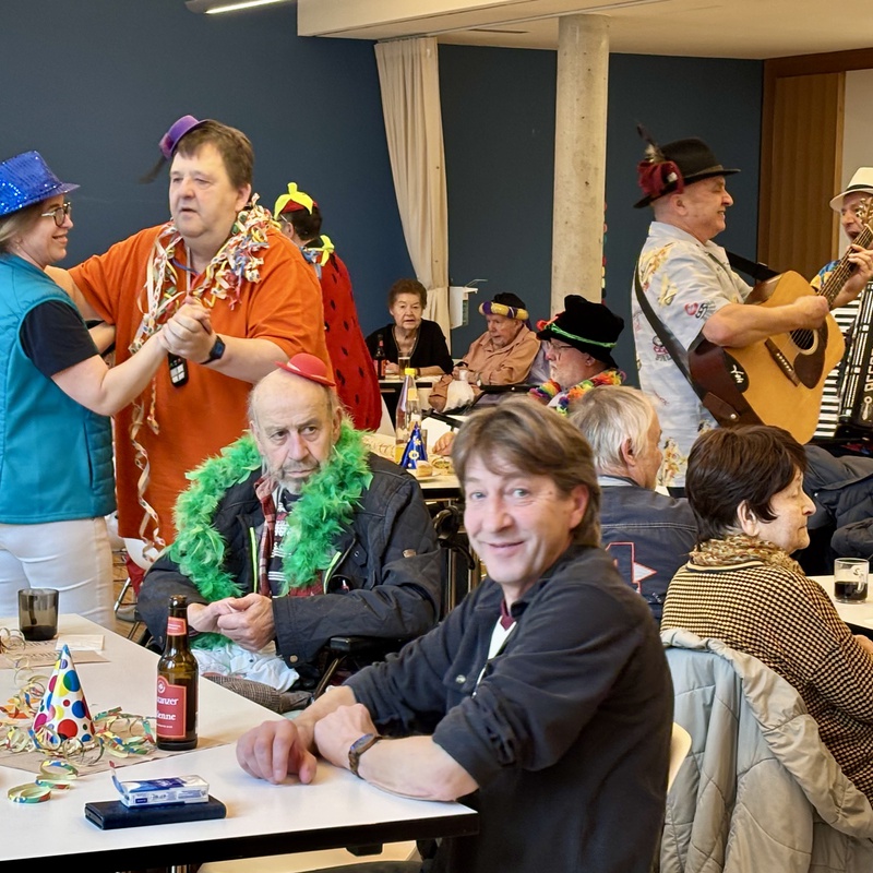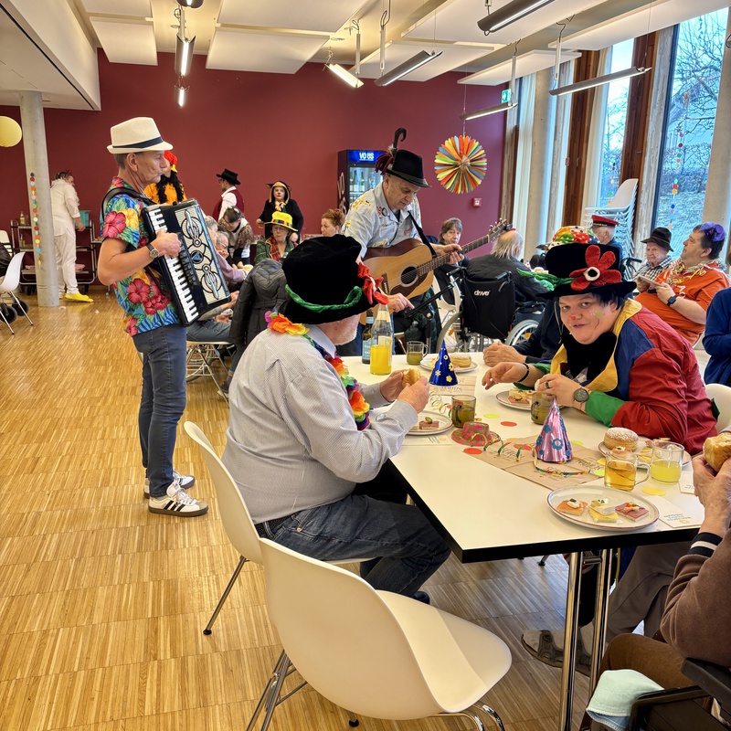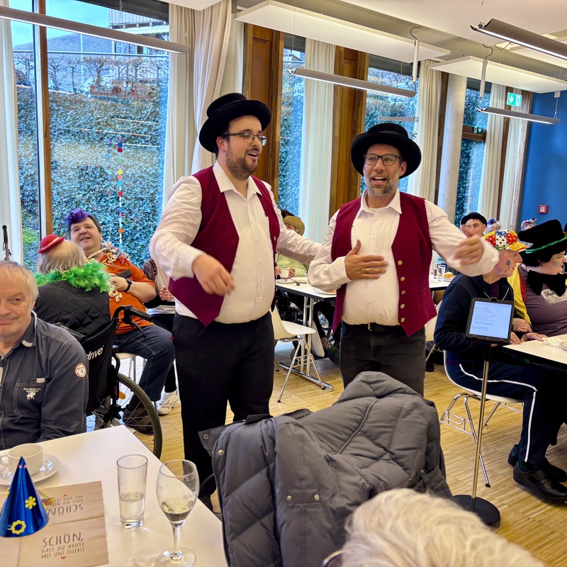 Am Rosenmontag hielt die fünfte Jahreszeit auch im vorderlandHUS Einzug. Zahlreiche Bewohnerinnen und Bewohner sowie Angehörige fanden sich in der Aula zu einem gemütlichen Faschingskränzle ein.